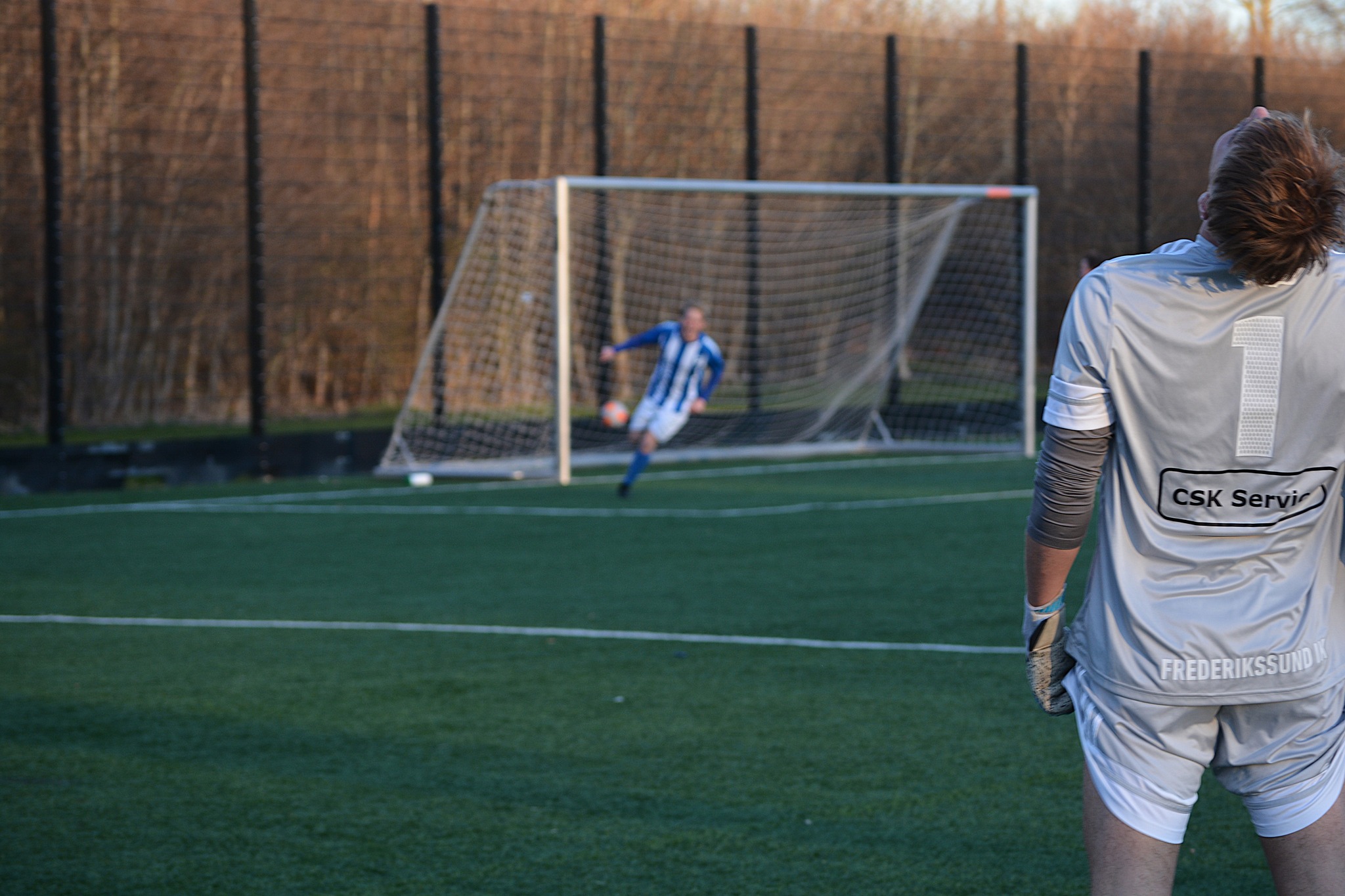 Frederikssunds strandede keeper kan på afstand nyde Mikkel Wargos scoring til 1-0. Foto: Susanne Prahl.