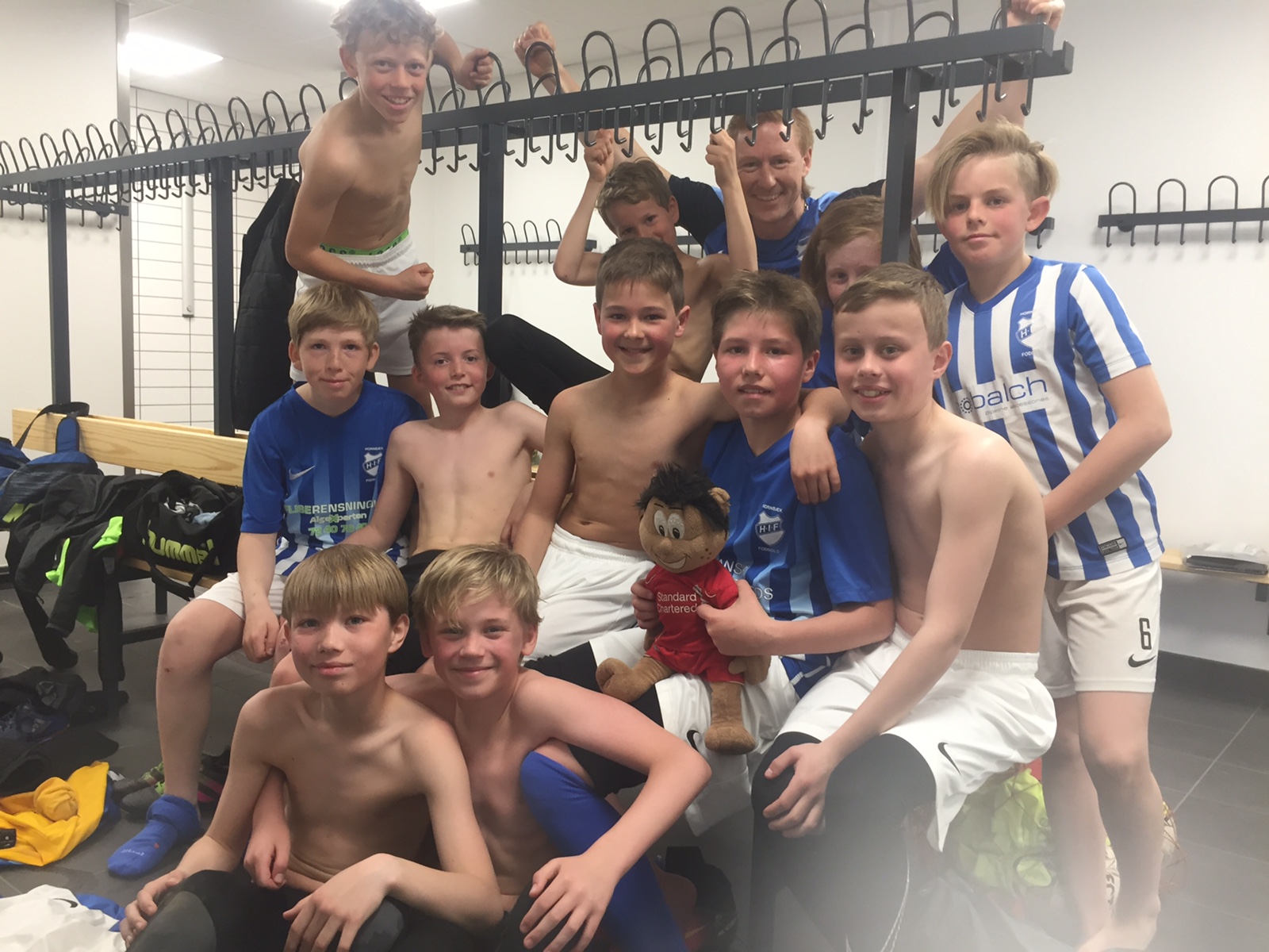 Drengene lod jublen slippe løs og fejrede det med en omgang »Møllehjulet drejer Hornbæk fik sin sejr«. Skønt at se deres glæde😊